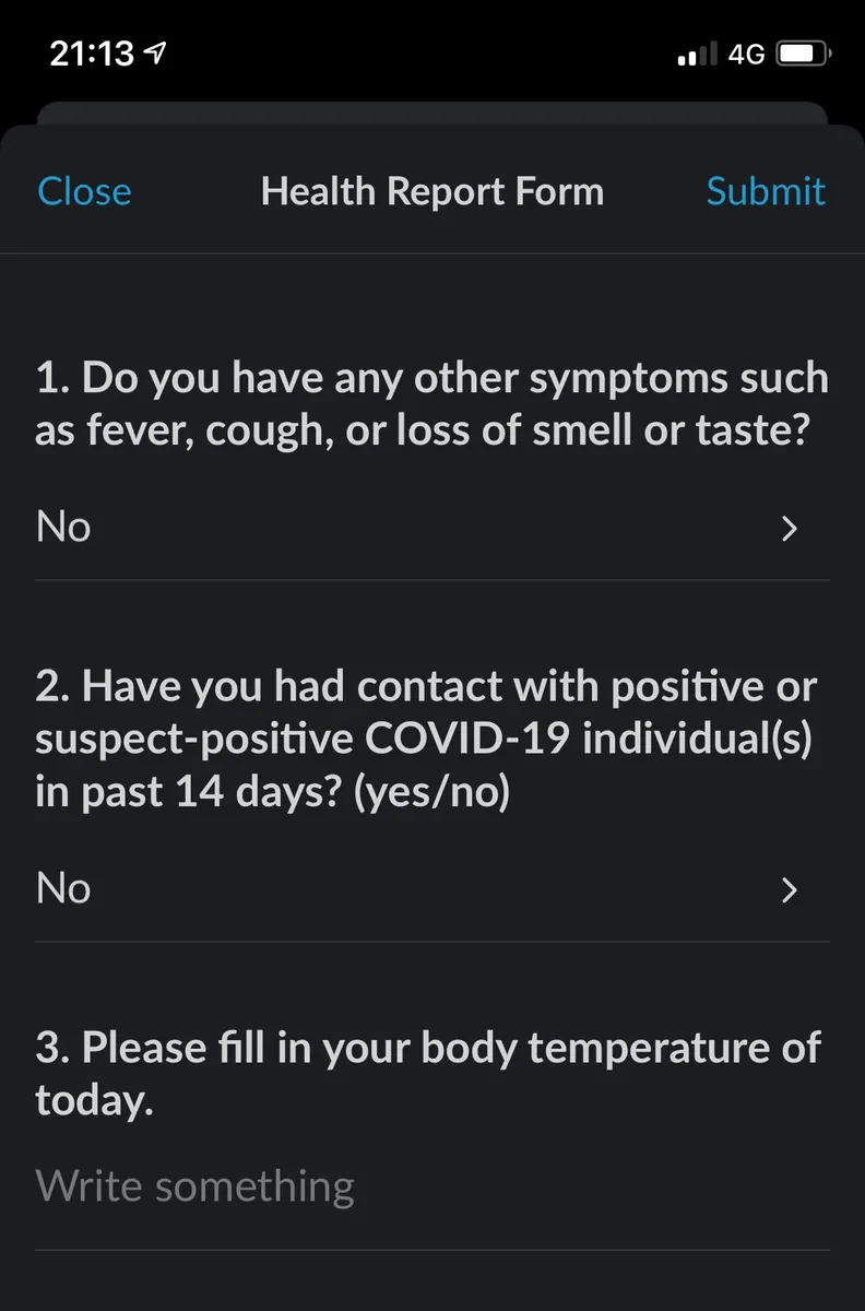 因应全面居家工作,公司关心所有成员的健康,每日均需回报身体有无状况并由 People Operations 统一纪录管理。