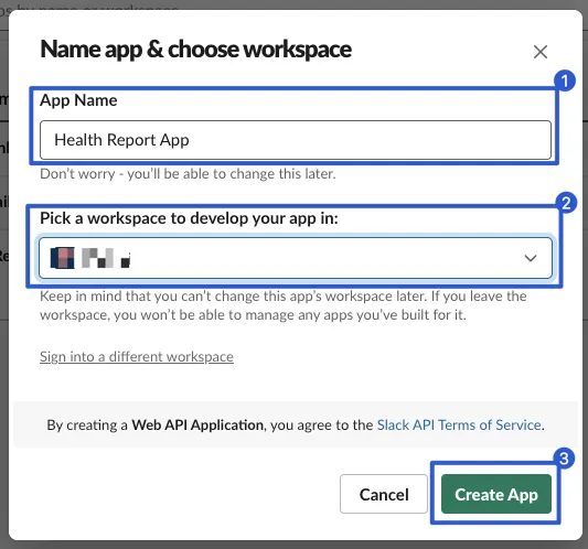 - 输入「 App Name 」跟 你想要加入的 Workspace