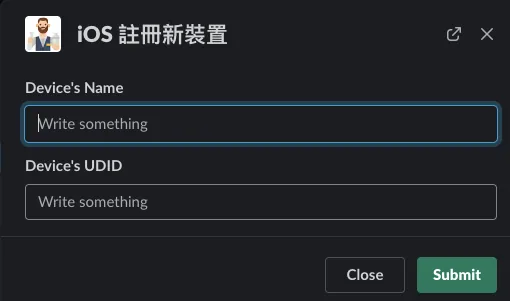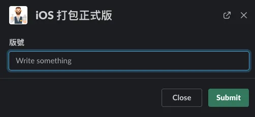 可用来串 CI/CD,用 GUI 包装原本丑丑的指令操作,例如搭配 Slack Bitrise APP,用 Slack Workflow form 组合启动 Build 命令: