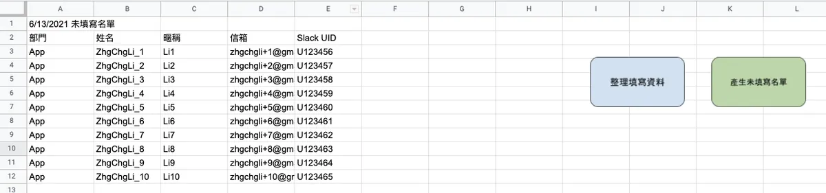 读取未填写名单 Sheet 组合出讯息并发送到指定 Slack Channel
