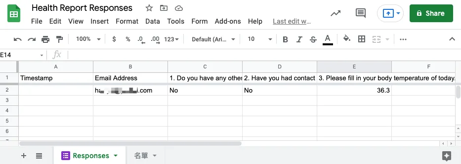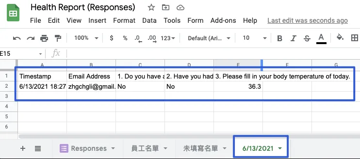 建立健康回报 Google Form 表单 & 连结回复到 Google Sheet