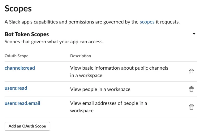 Bot User OAuth Token使用网页版 Slack 打开想要汇入名单的 Channel