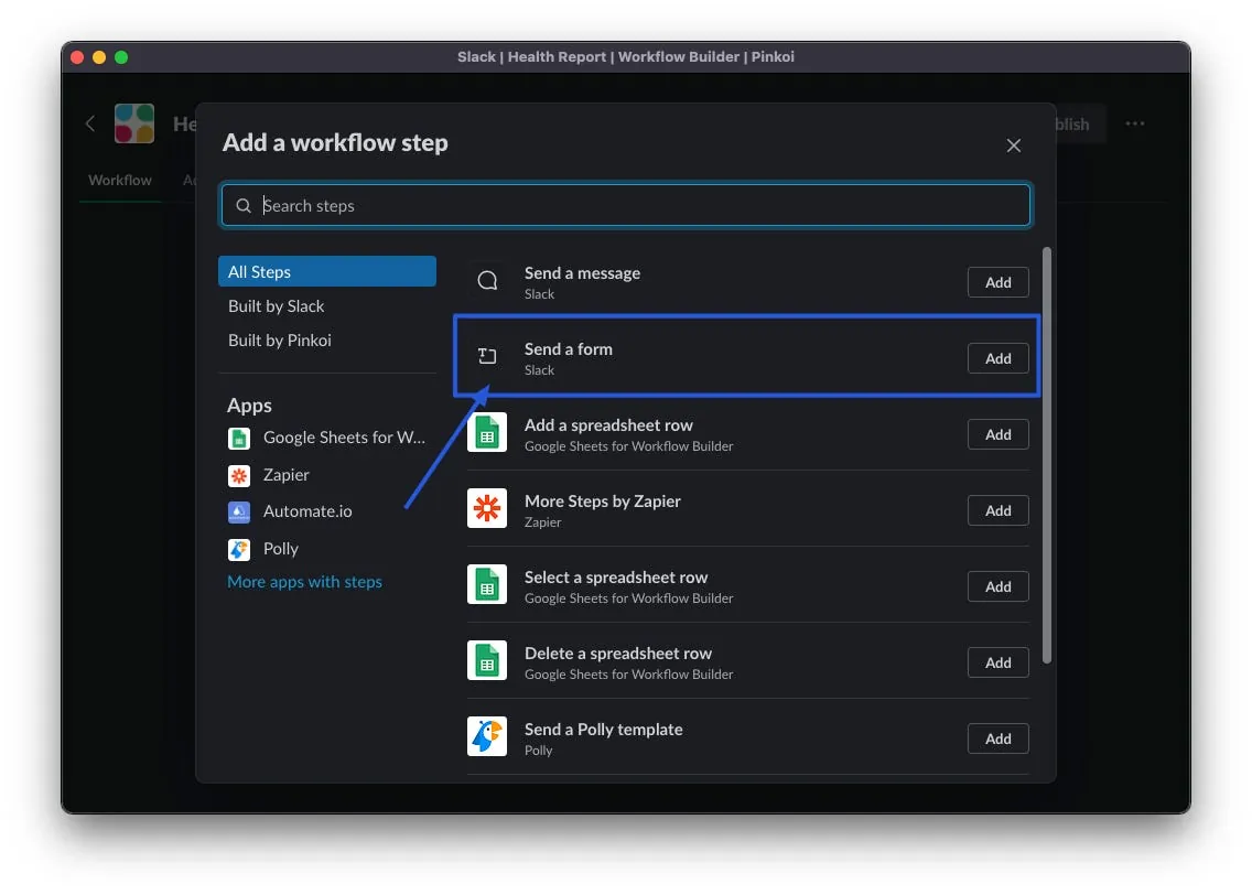 传统的 Google From 填写入口有了之后,我们先来新增 Slack 填写方式。