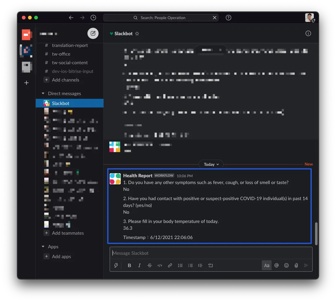 Slack 打造全自动 WFH 员工健康状况回报系统