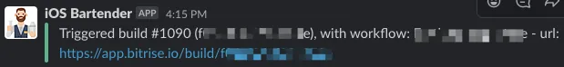 送出之后会发送指令到有 Bitrise APP 的 private channel,EX:
