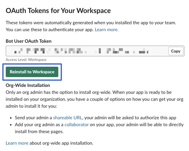 - 回到最上面点击「Install to workspace」or「Reinstall to workspace」