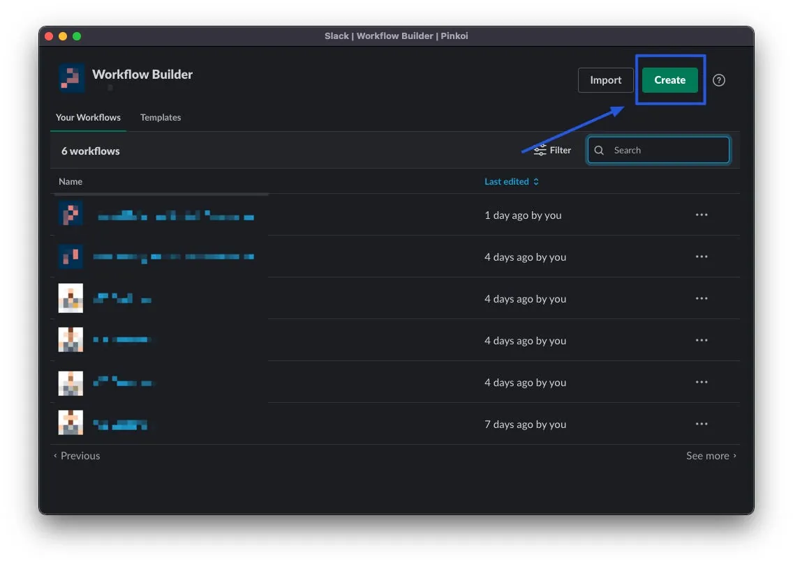 这边会列出你建立的或参与的 Workflow,点选右上角「Create」建立新 Workflow