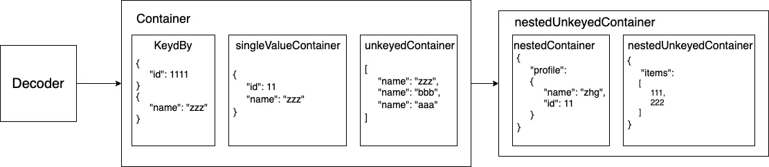 nestedUnkeyedContainer命令跳过,且nestedUnkeyedContainer必须有成功 decode 才会继续执行;所以才这样做,看 swift 社群有人提增加 moveNext( ) ,但目前版本尚未实作。