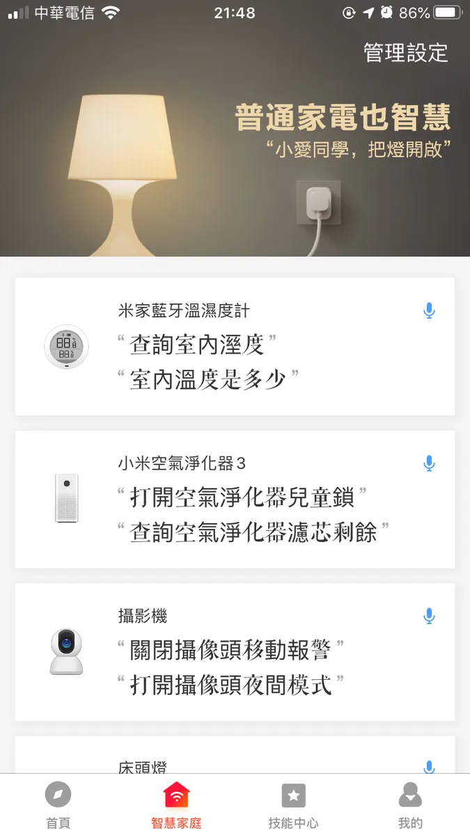 因此我的小爱音箱原本的地区选择也是设中国地区,之前买的家电再加入上没碰到问题,最后也最后也无碍的建立好完整的智慧家庭流程:出门跟小爱说掰掰就会自动关闭所有电器+打开门口摄影机;回家则说到家了,一样连动家电自动开启;体验起来蛮舒畅的!