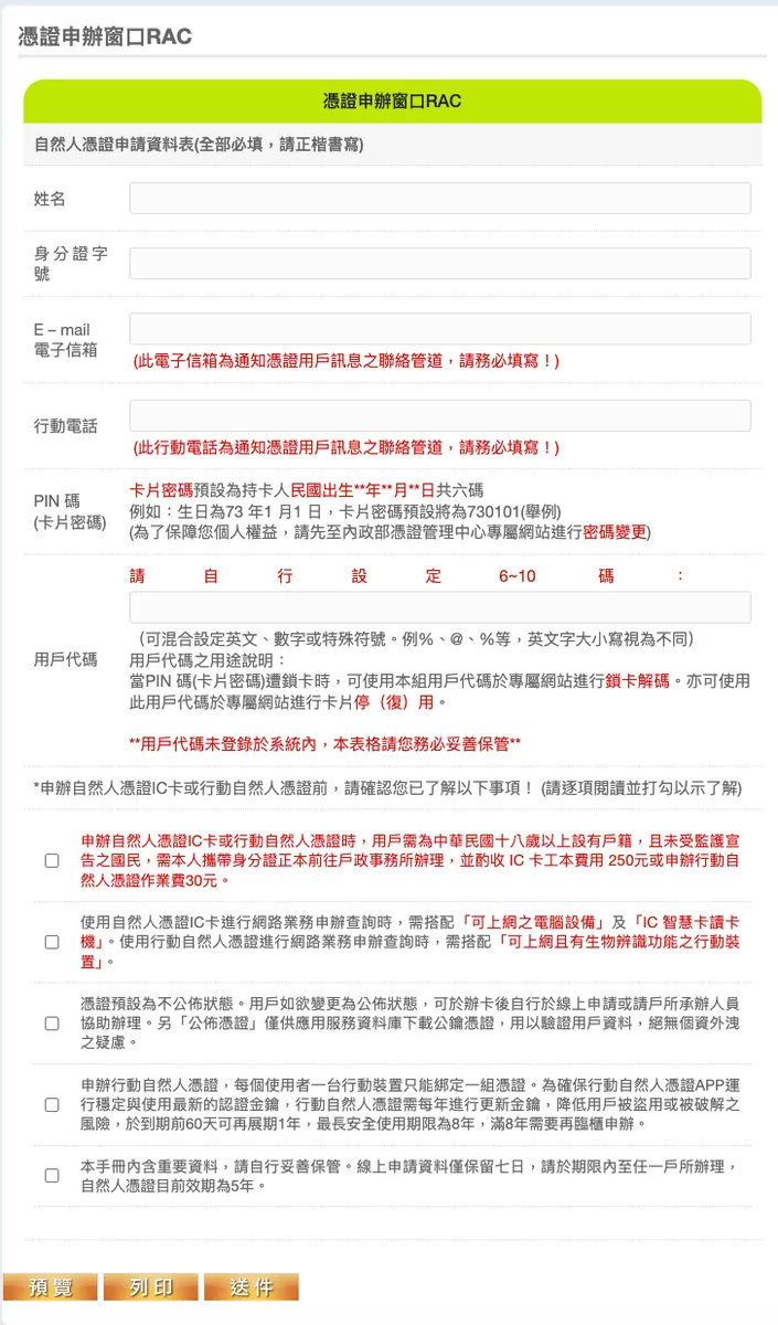 完成线上填表后,请携带您的 身分证正本 及 工本费 250 元,亲自前往任一户政事务所办理。