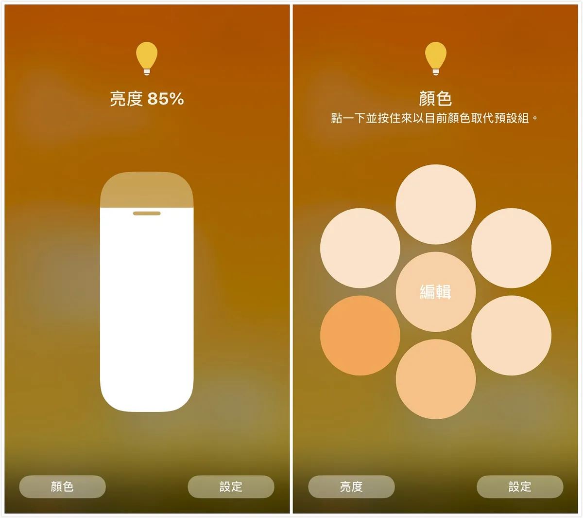 加入配件成功后,在配件上重压(3D TOUCH)/长压,即可调整亮度、颜色。