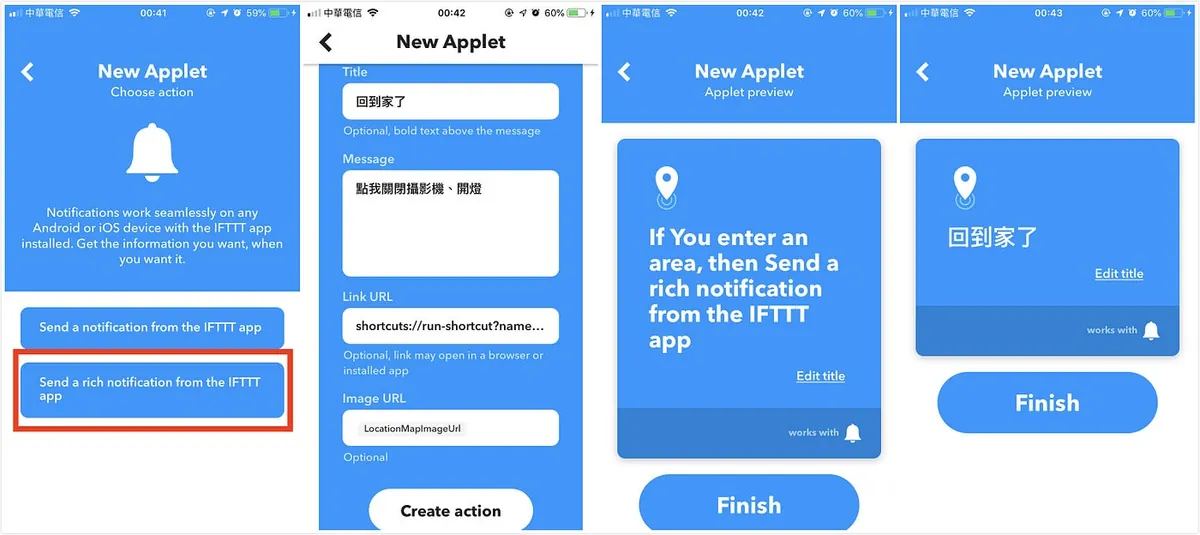 选择「Send a rich notification from the IFTTT app」: