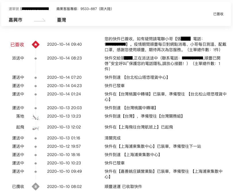 系统给的预估收到时间 10/16~10/19(可能刚好遇到大陆国庆长假)