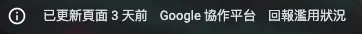1.侵入性低,仅左下会有悬浮惊叹号点了才会显示「Google 协作平台 检举滥用」