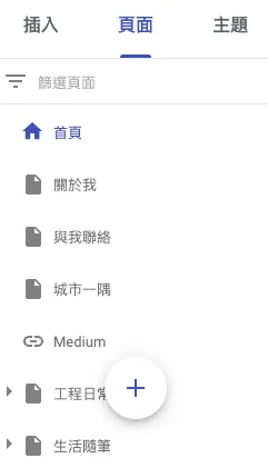 可新增页面用拖曳的方式拖到现有页面下就会变成子页面、或点击「…」操作。
