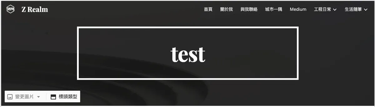 新增页首后滑鼠移到左下角就能变更图片、输入标题文字、变更标头类型