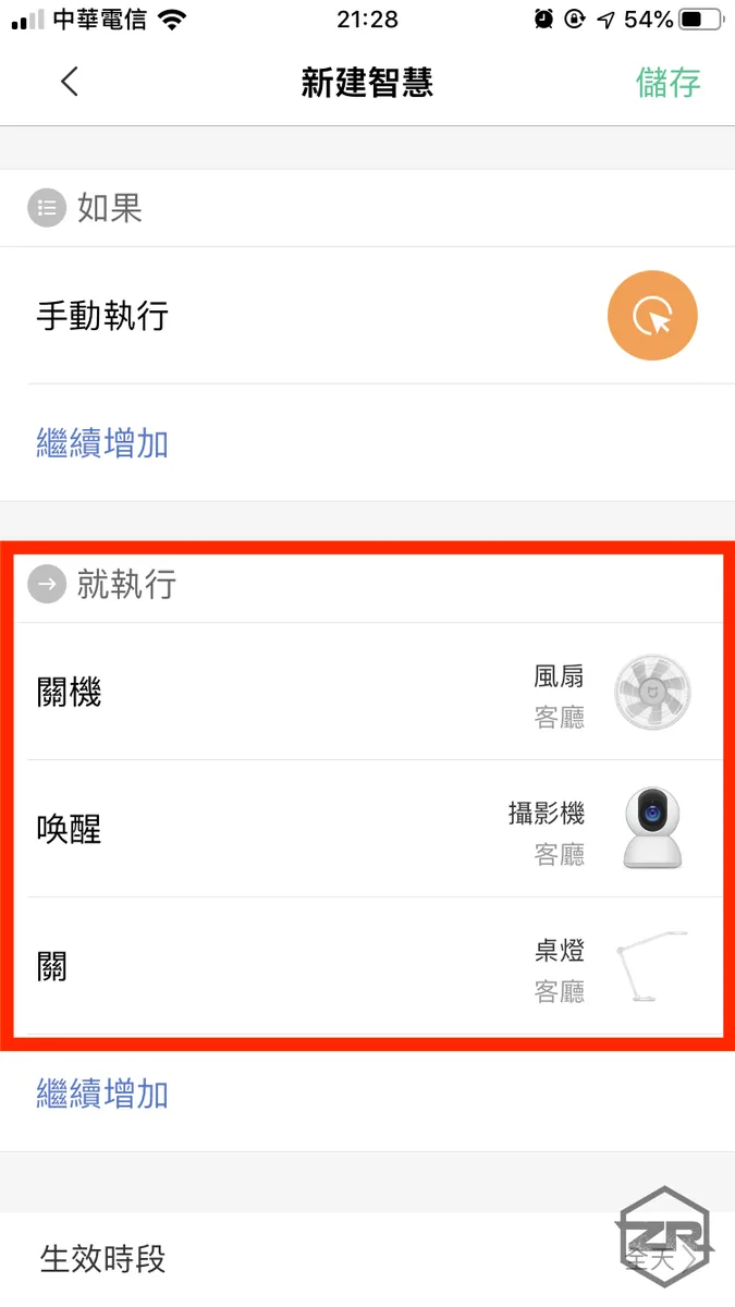 下拉「智慧装置」区块,新增要操作的装置及动作