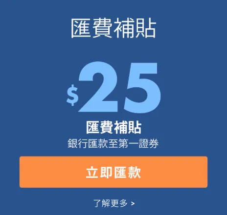 一次汇款的金额越多,比率越低, Firstrade 单笔入金超过 $10,000 美金 (约 $310,000 台币),还可再申请最高 $25 美元、每月最多三次入金手续费补贴、需在汇款后 30 天内申请(参考文末教学) 。
