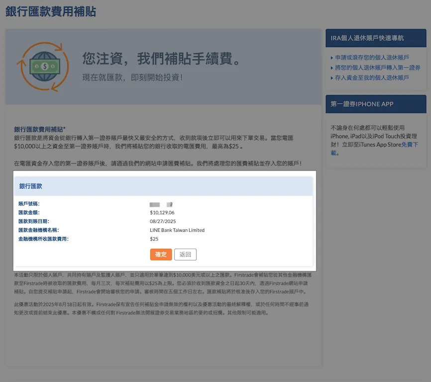 LINE Bank 入金 Firstrade 教学|快速到帐、低手续费150元、帐户升级与手续费补助申请全攻略