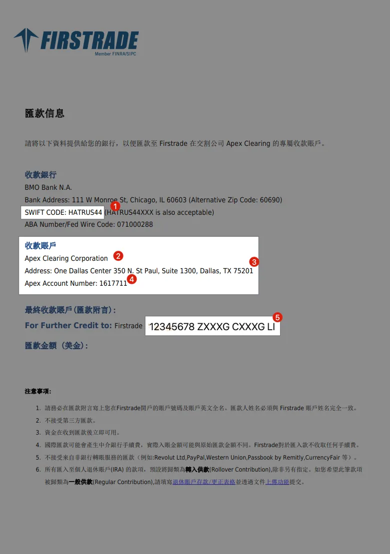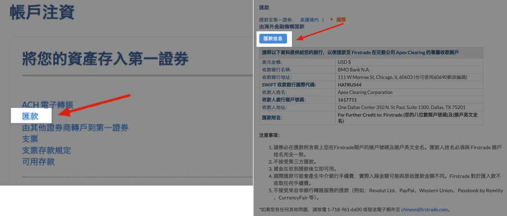 约定 Firstrade 汇款帐户