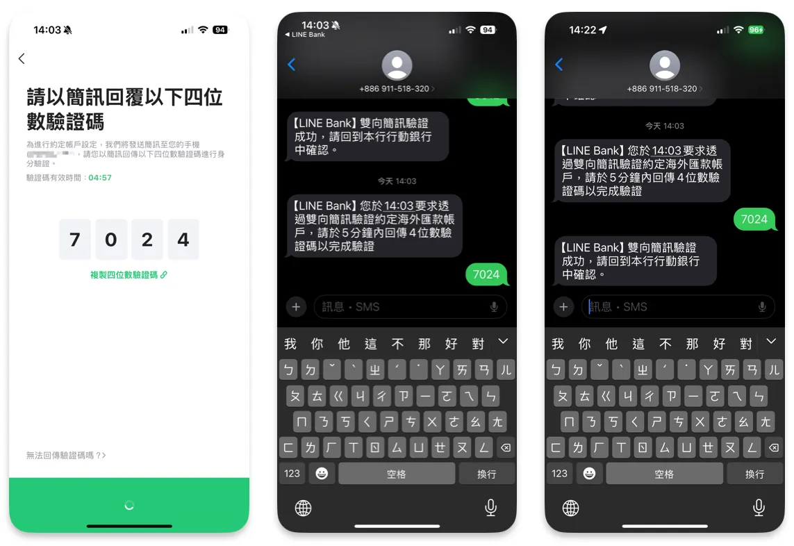 需要完成双相简讯验证,跳到刚收到的简讯输入四位数验证码;等待约 1–2 分钟,收到确认成功简讯代表验证完成。