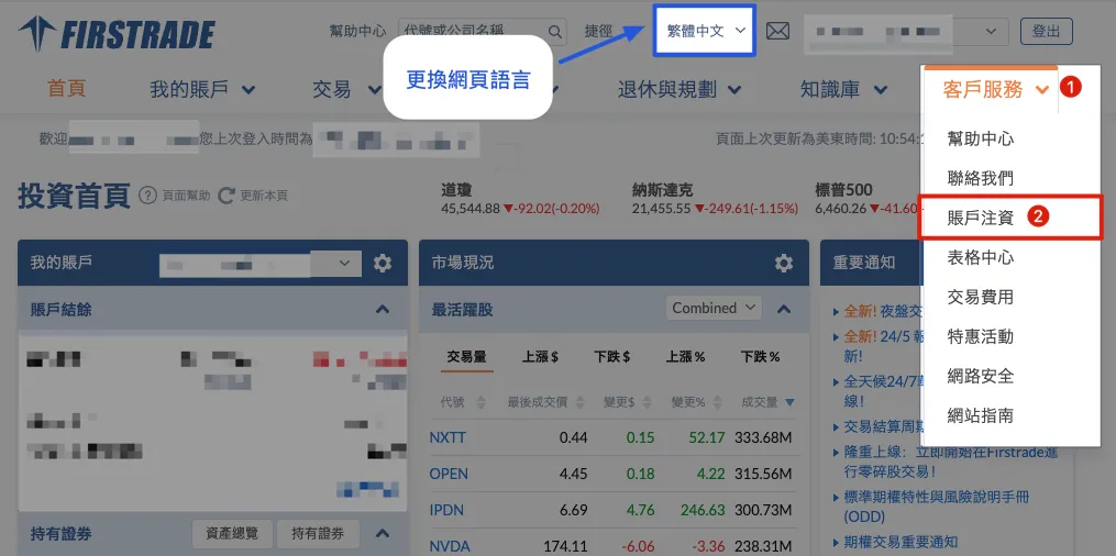 (请使用电脑版) 登入 Firstrade 后选择: