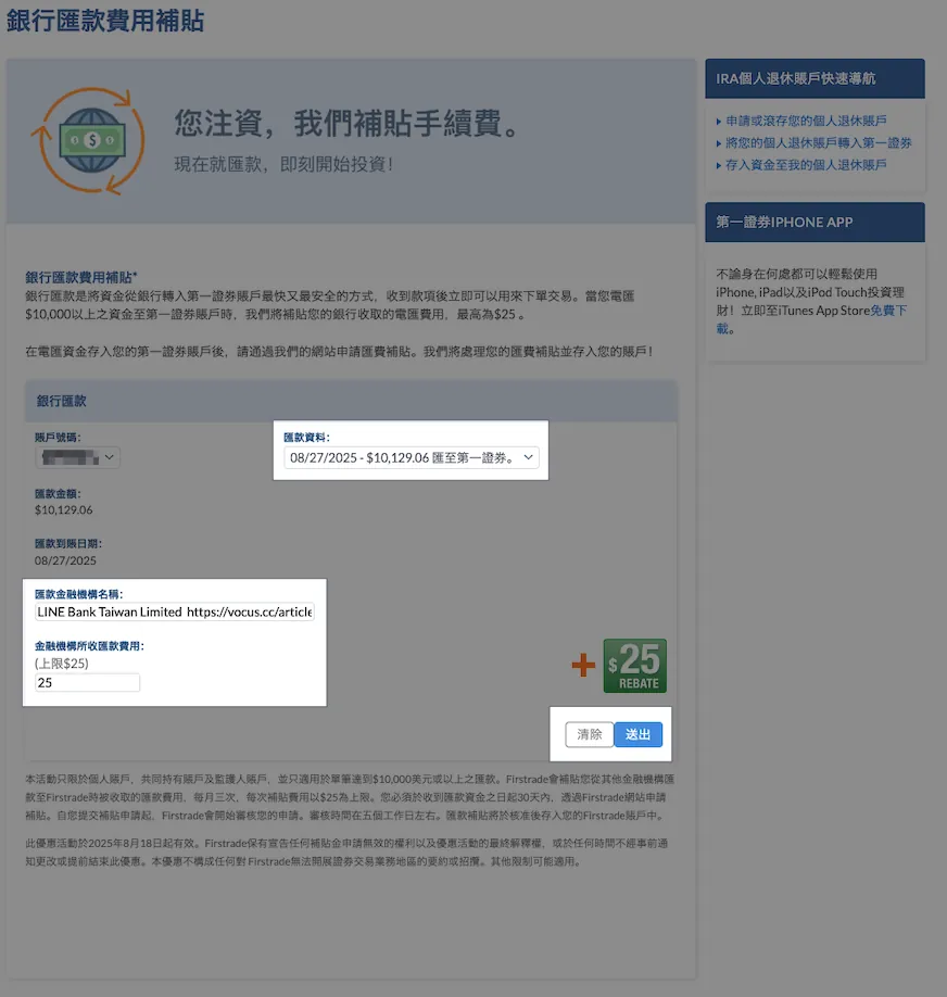 手把手教学 — LINE Bank 入金 Firstrade 快速到帐、手续费只要 150 元及帐户升级/约定转帐/手续费补助申请教学
