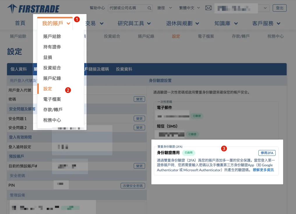 务必到「我的账户」 → 「设定」 → 启用「身份验证应用」。