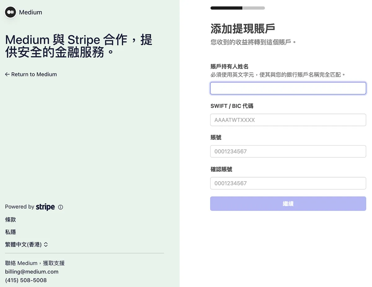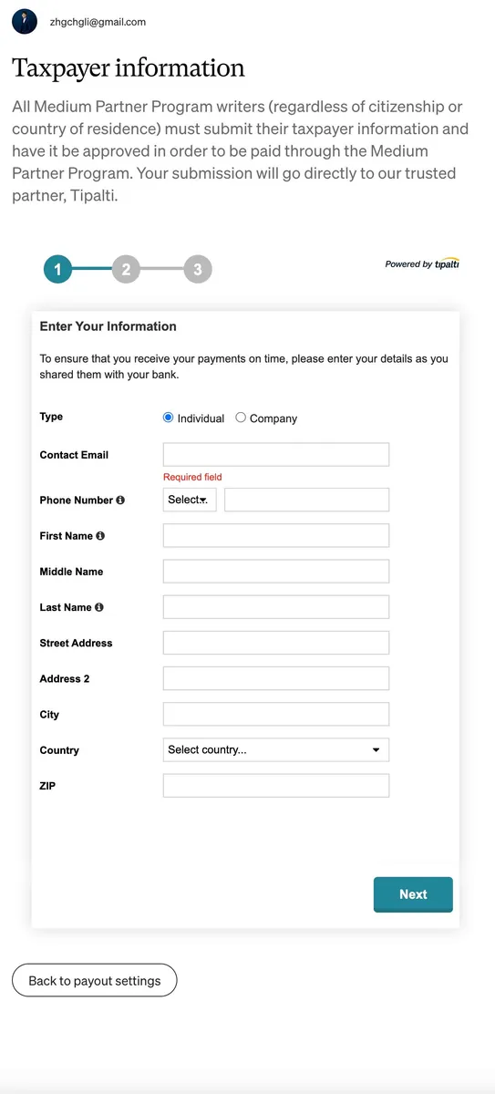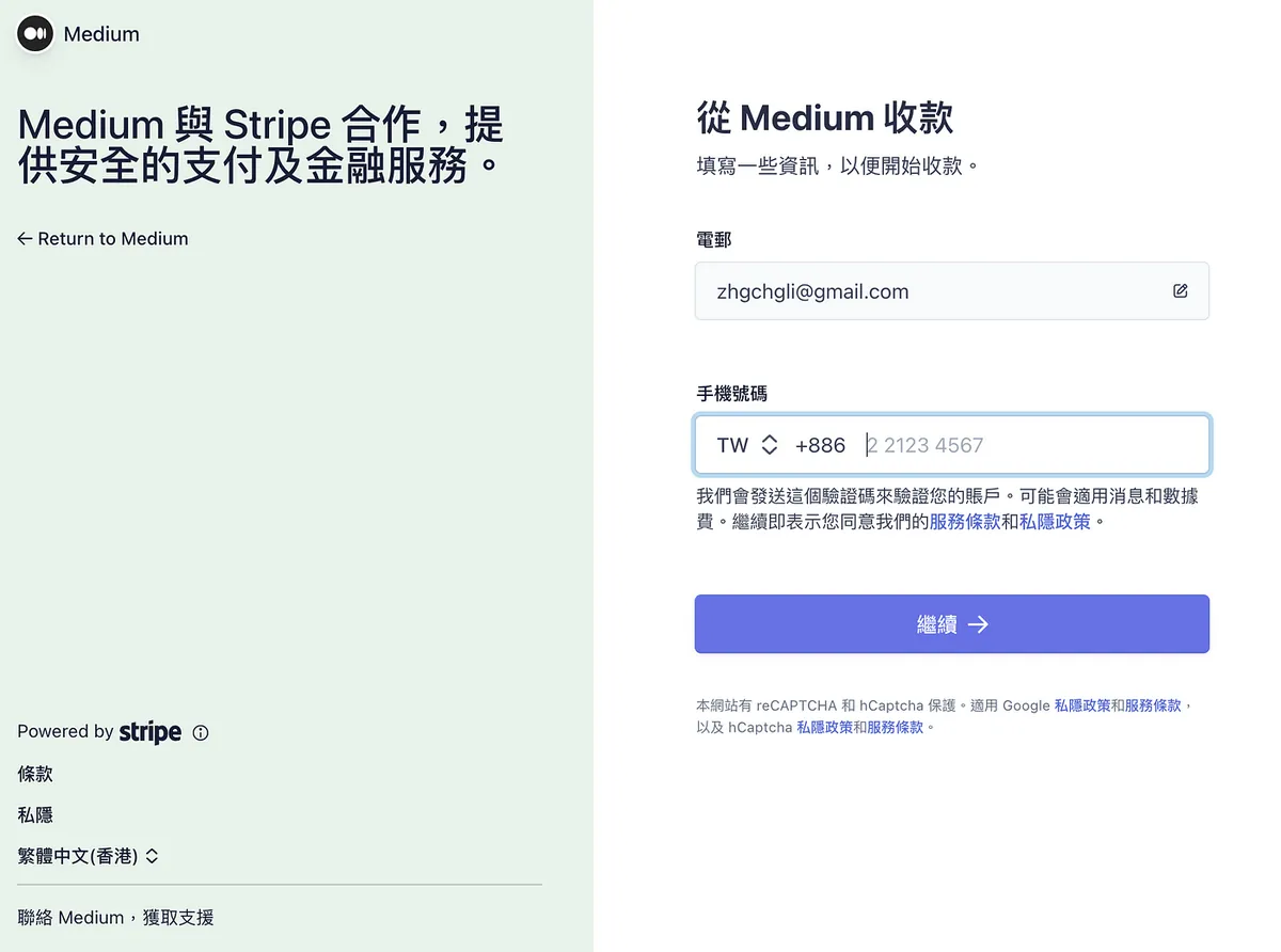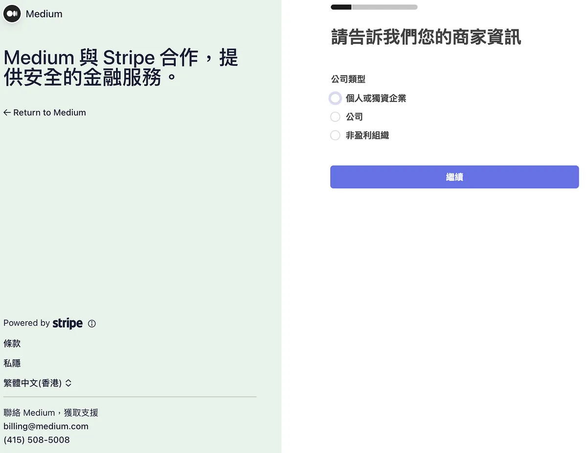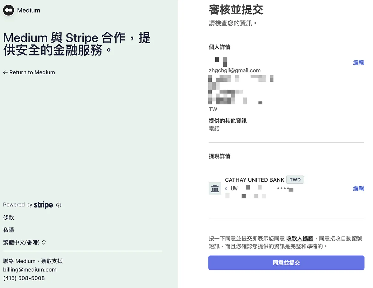 送出无误后会再导页回 Medium 继续设定税务资讯。