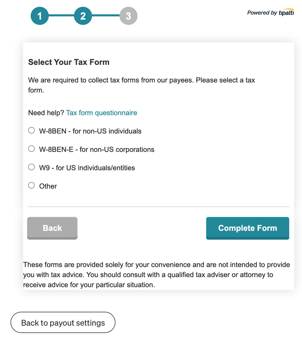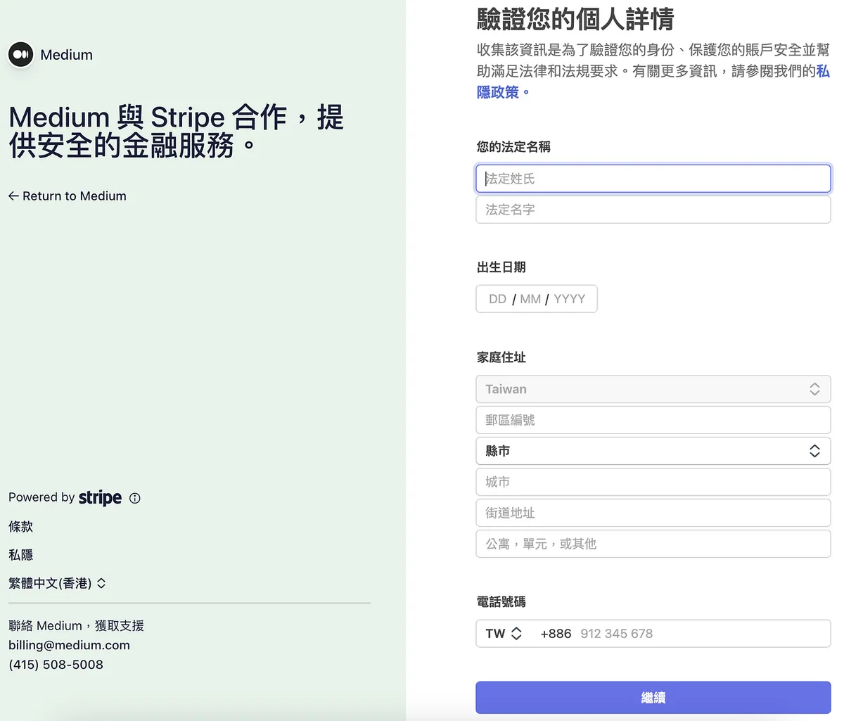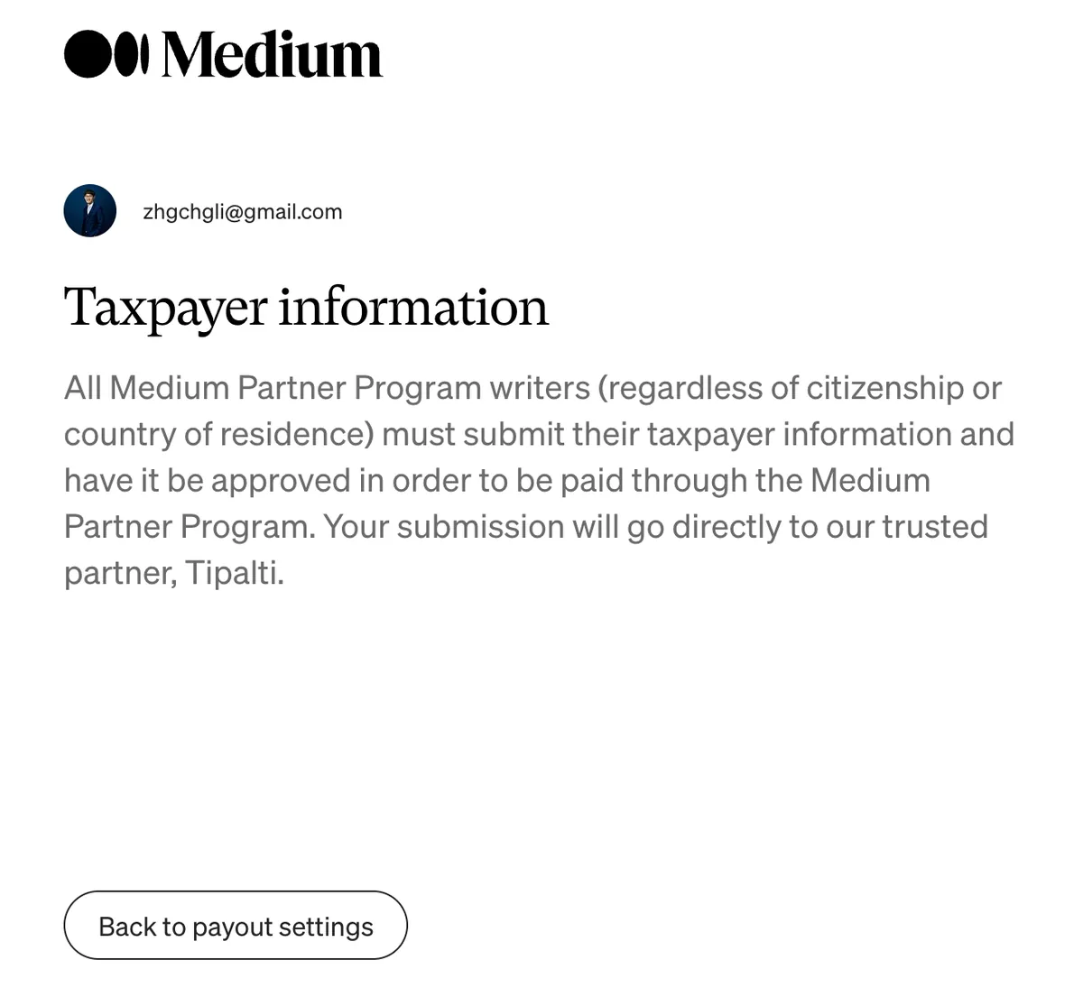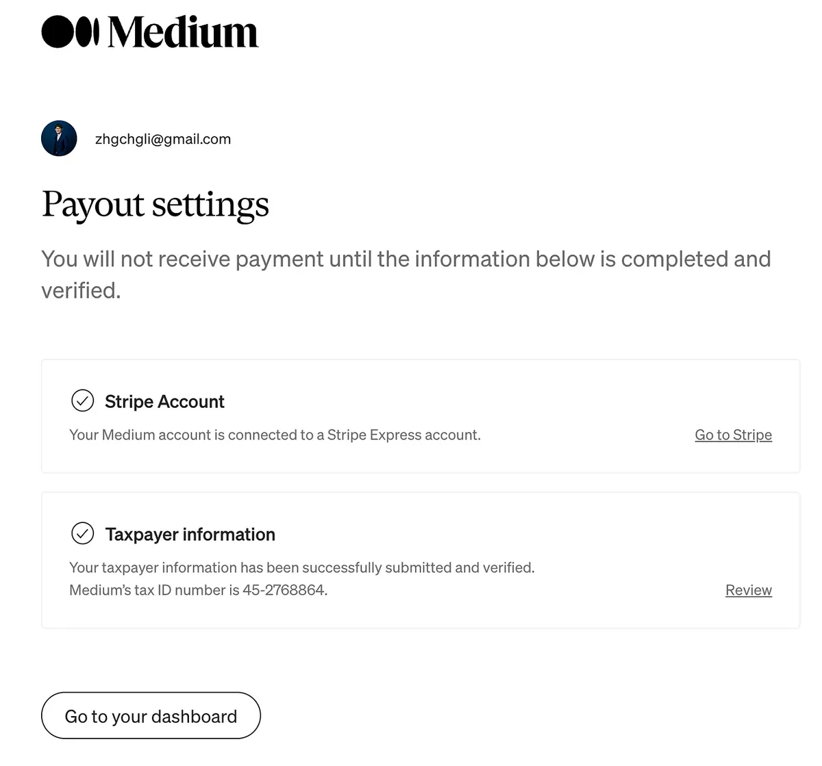 送出无误后会再导页回 Medium 继续设定税务资讯。