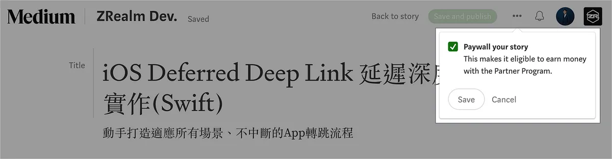 打勾「Paywall your story」-> 「Save」