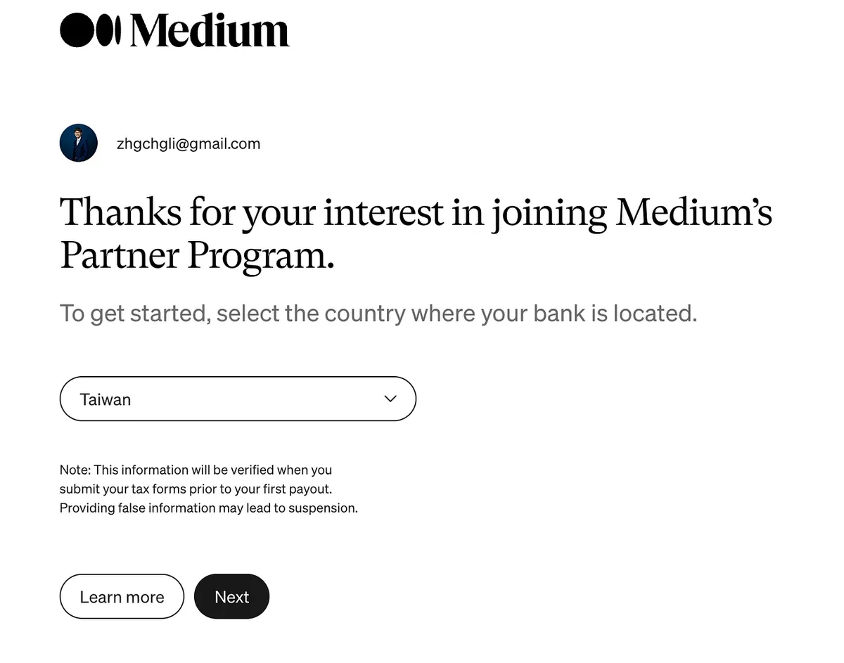 直到最近 2024/08 无意间在 Medium 在后台的 Banner 喵到邀请我加入 Partner Program (我想说 What?又不开放台湾加入),点进去看之后惊讶的发现,目前已经全开放了,几乎所有地区的创作者都能加入 Partner Program,透过自已的文章一字一句获得收益。