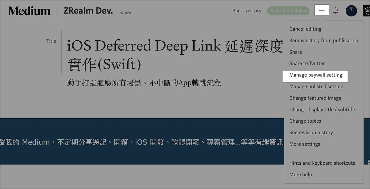 - 文章编辑 -> 「Manage paywall setting」
