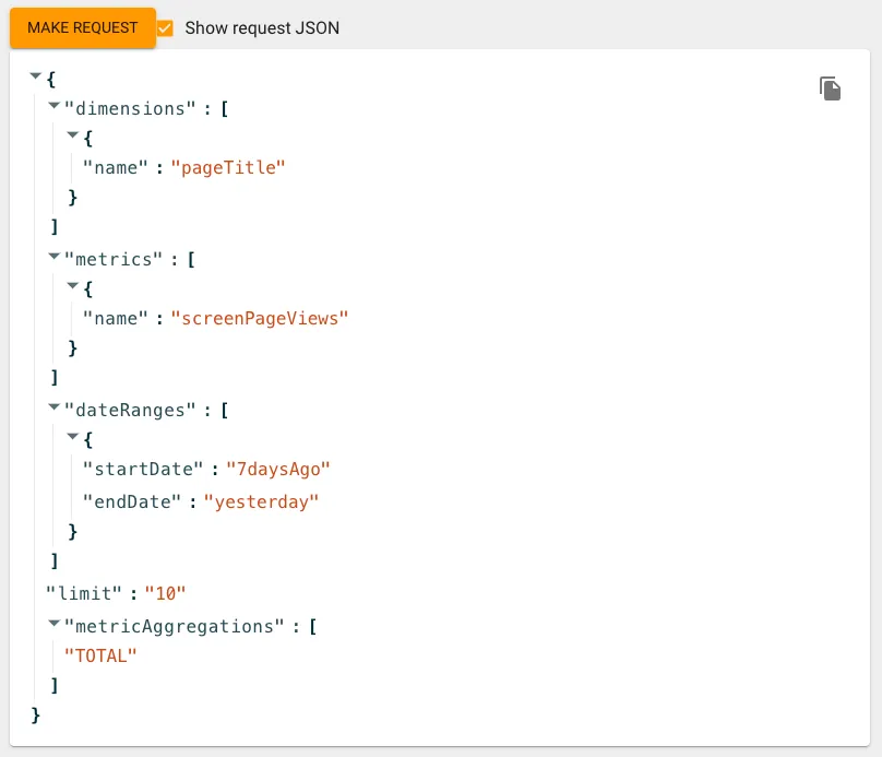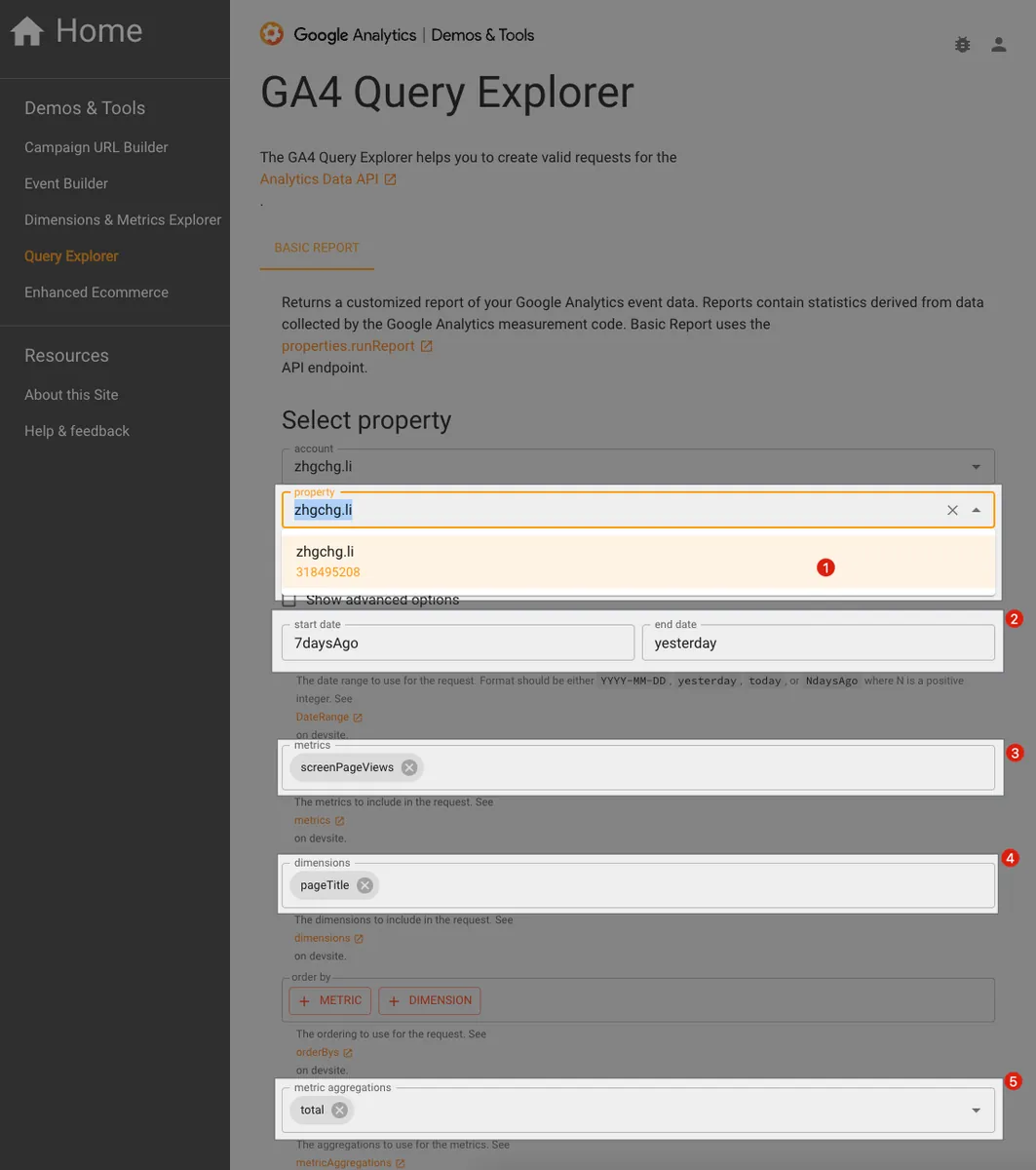首先,我们需要使用 GA4 Query Explorer 官方提供的工具产生我们需要的查询数据报表参数: