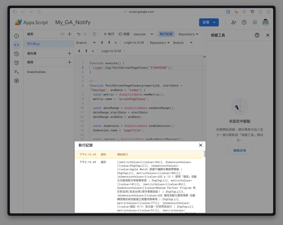 - Google Apps Script 请求 GA 数据成功!🎉🎉🎉