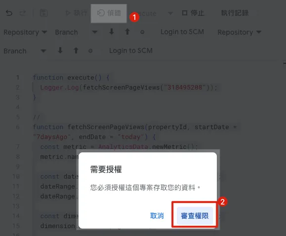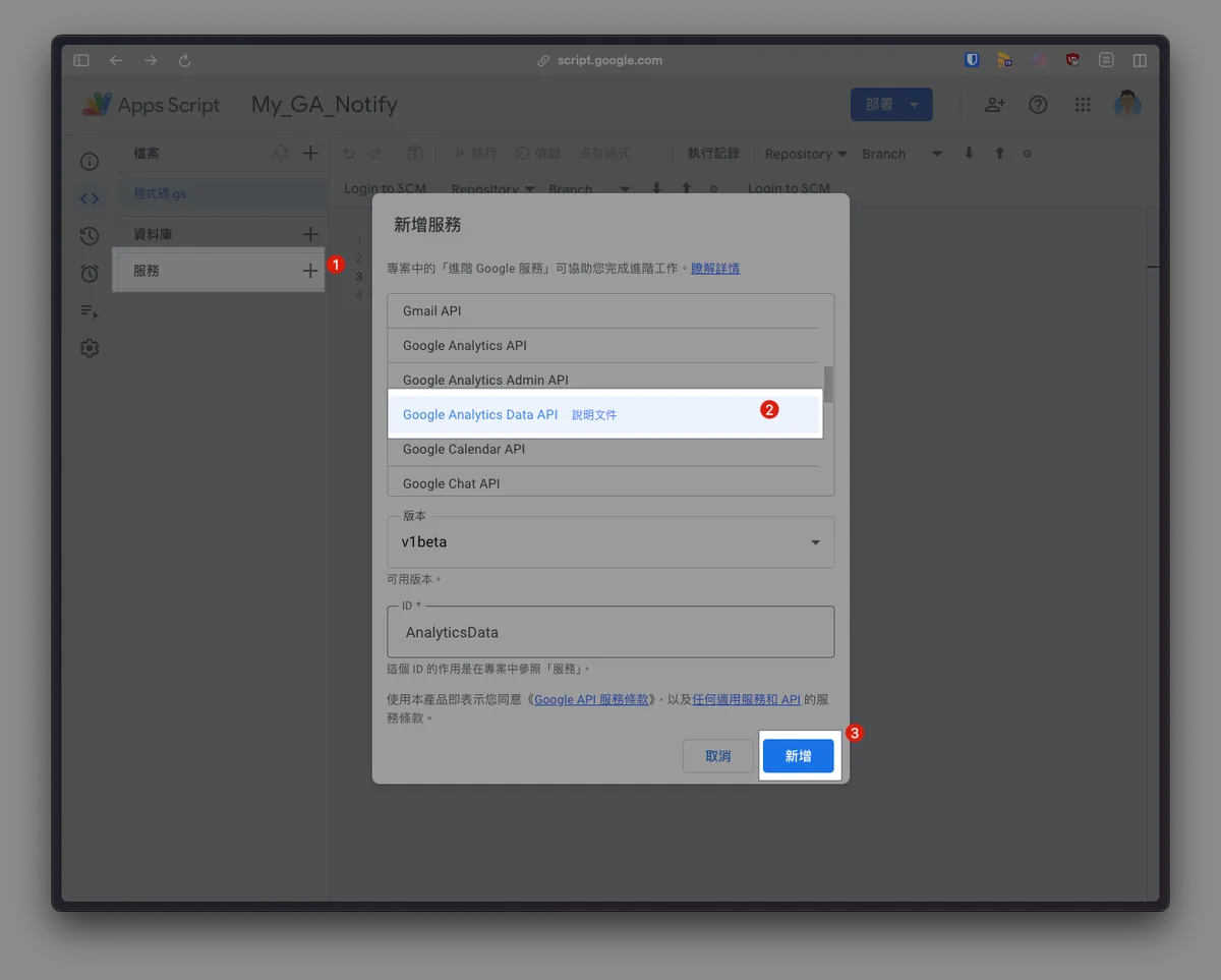 Step 2. 建立 Google Apps Script & 使用 Google Analytics Data API 查询资料