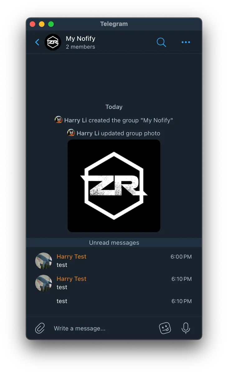 - 回 Telegram Group 就会出现刚发送的讯息内容。