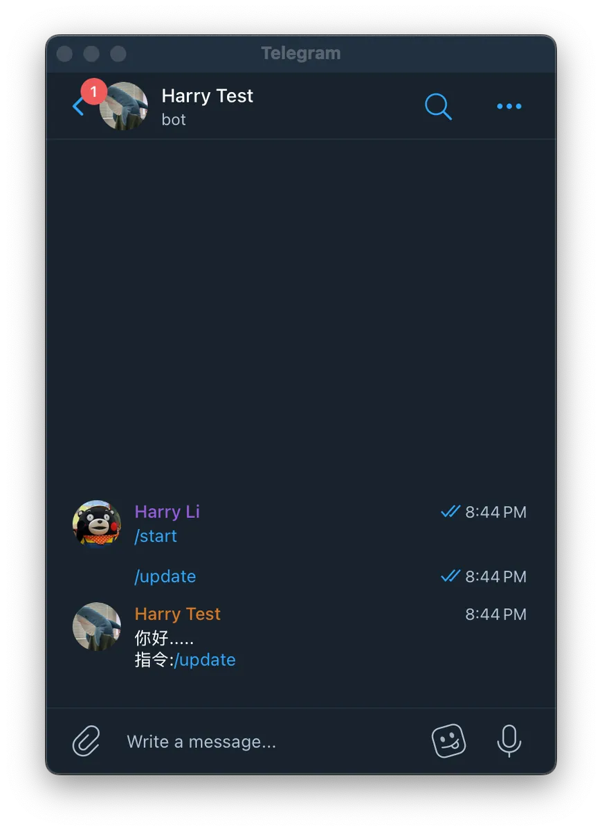 Telegram Bot Command 就能让我直接输入指令讯息,命令机器人立刻执行我想做的事情。